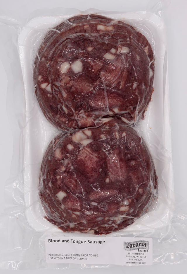 Made from pork blood. pork tongues. and natural spices. Fully cooked. Slice and serve cold or try it fried -- either method is a delicious way to enjoy this nutritious sausage. 16oz. sliced and sealed package